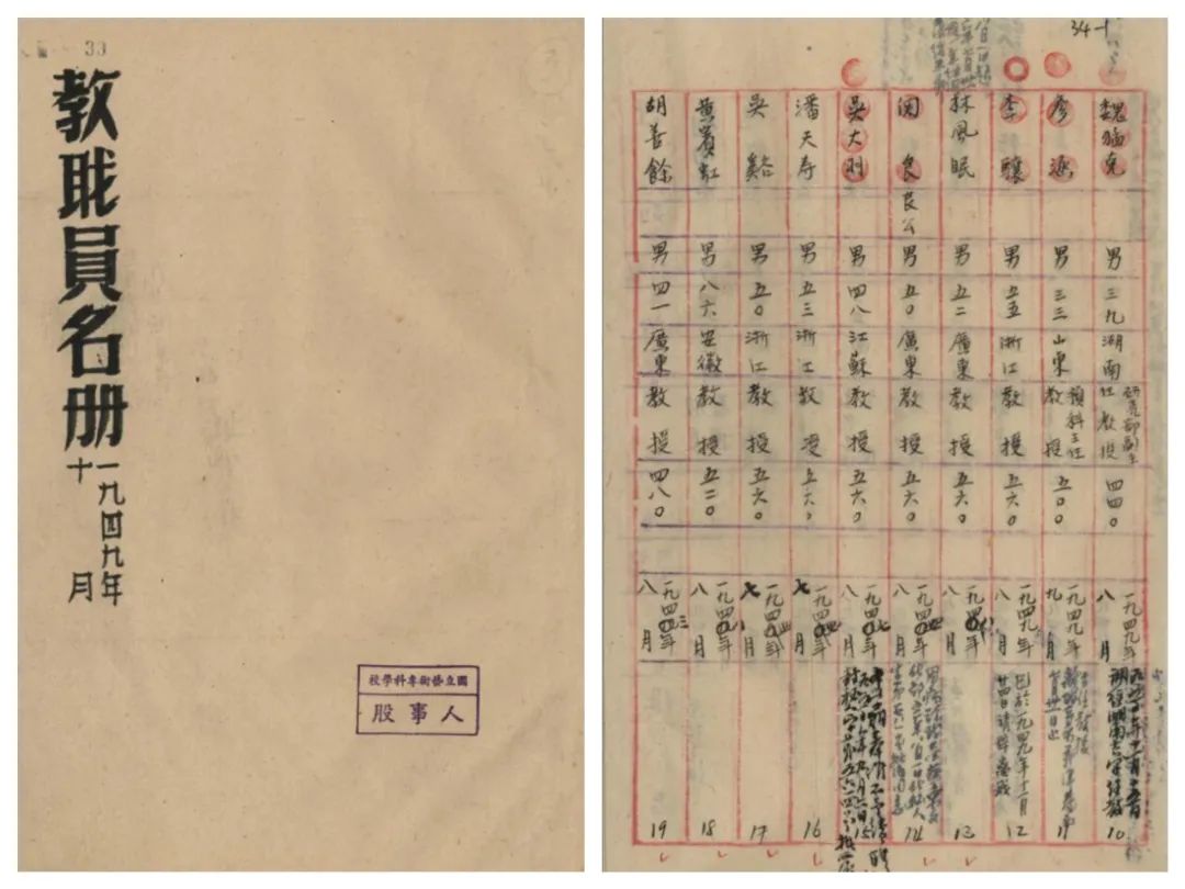 杭州国立艺术专科学校教职员名册(1949年),中国美术学院档案室藏