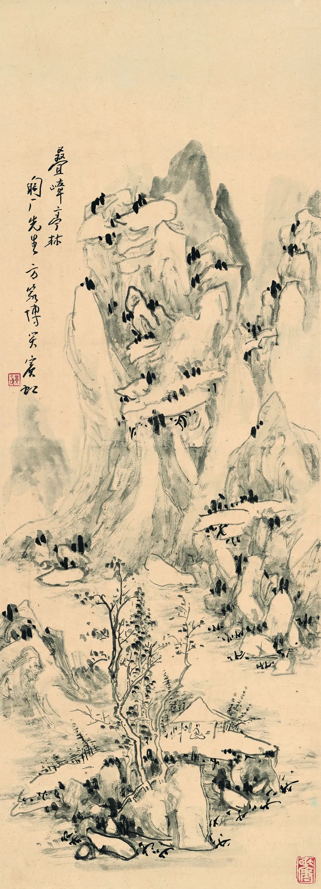 宾翁书画,甄陶天机,笔墨铸魂,别开一面。他是引领传统中国艺术转向现代的大师,他潜心民族艺术,博采山川,浸淫史论,早学晚熟,八十岁后面貌大变,笔墨技法炉火纯青,并留下“五笔七墨”的不朽宏论。纵观黄宾虹的山水画,无论立轴、横卷,皆严守中国绘画的构图方式和规律,并充分发挥主观想象,或云壑危崖,或林峦幽径,或湖山帆影,或重山复水,生动地描绘出祖国山河“无处不美”的景象。他所形成的黑密厚重的画法特点和浑厚华滋的艺术面貌,突破前人,使中国山水画的发展跃入一个新的境界。